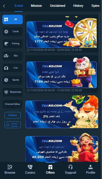 Invite friends and earn commission when they play. Referral income is one of the best features of the 786KO Game.